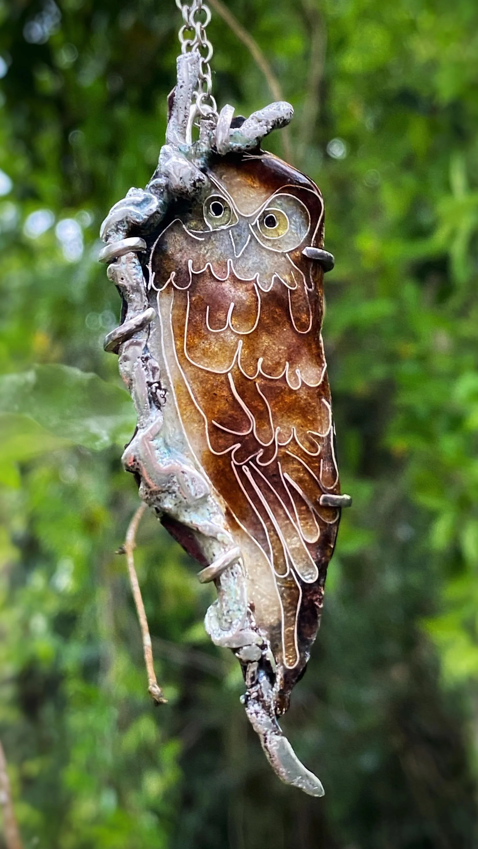 “Untamed” enamel on copper and silver handmade necklace [SOLD]